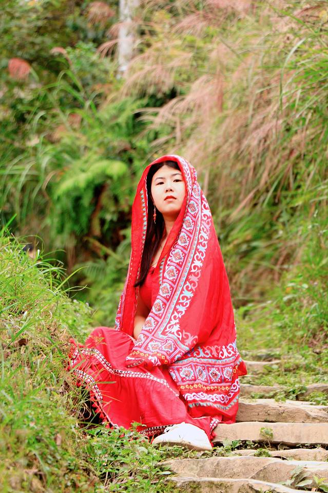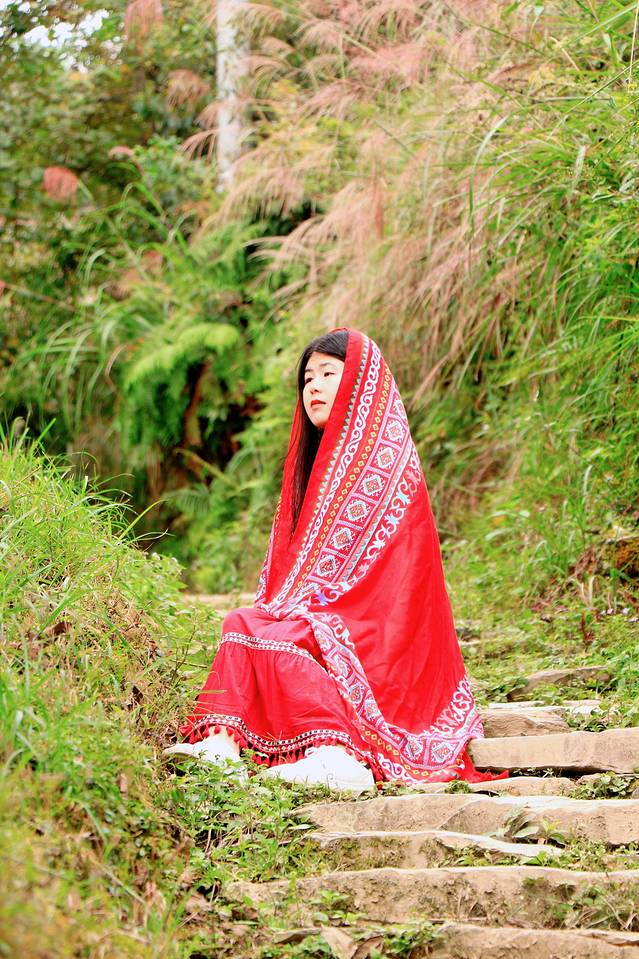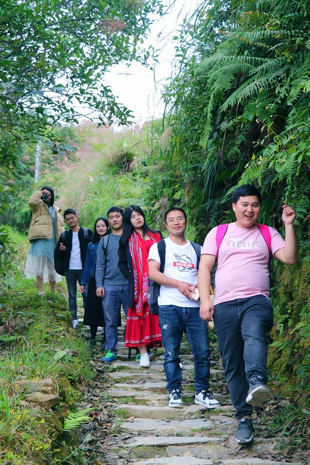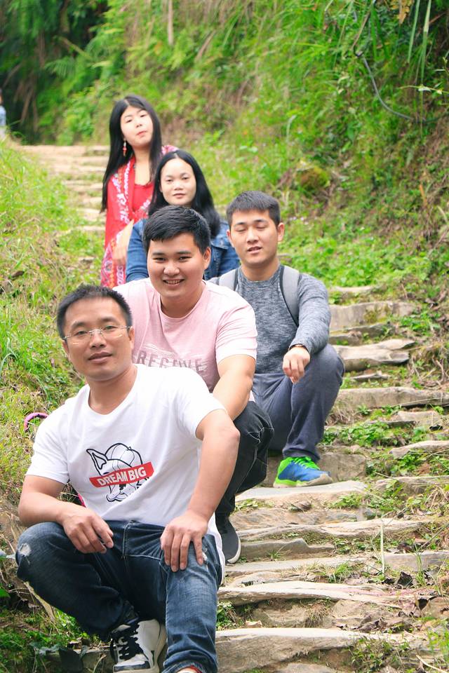 回头看一眼,我们已在半山腰,田头寨的石板路是原始的,古道的历史感迎面扑来,我们先来一组小合照。