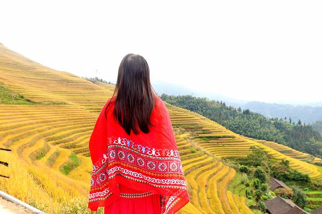 上午9点半从 桂林 出发,从 桂林 到龙脊梯田走国道约3小时(含堵车半小时)。堵车主要是进了龙脊梯田大寨验票处之后堵车。路过了黄洛瑶寨(即天下第一 长发村 ),由于我们两天的行程较满,就不去了,如果想去的小伙伴,不管是去大寨还是平安都会路过哟!