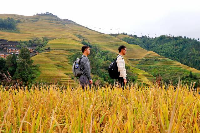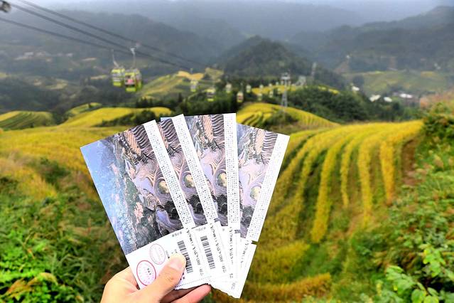 先到大门处购买门票,金秋稻谷变黄的时候,大 桂林 的市民也是全价票80元/人,其他时间享受半价,门票是大通票哟,含龙脊大寨景区,小寨景区,金坑梯田景区,古壮寨景区四个大景区,没到一个梯田都会检票哟,但是进去了不出来的话待一个月也没啥问题哟
