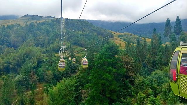 缆车相较于如意峰是比较小的,但是有小窗口,可以将手机伸出去拍摄,不过大家要手稳哟,山下有很多的游客和务农的族人,缆车上看梯田是不同的视觉感受。
