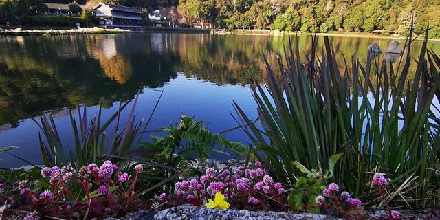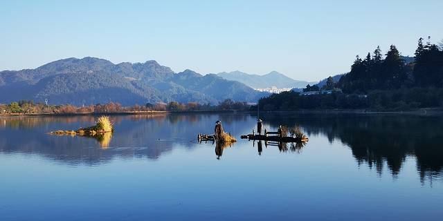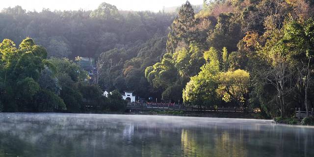 湖面上一层薄薄的轻雾,仙气十足。