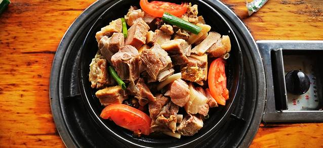 地道的腊排骨火锅要在古城外面吃。味道不错😊