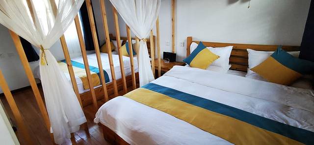 民宿房间特别宽大,床也特别宽大。