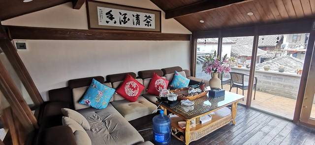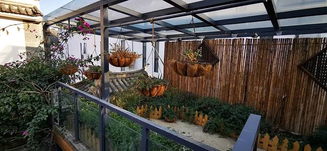 在我们的民宿,楼上有一个天台,非常舒服,可以看古镇的全景。