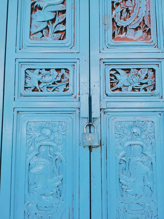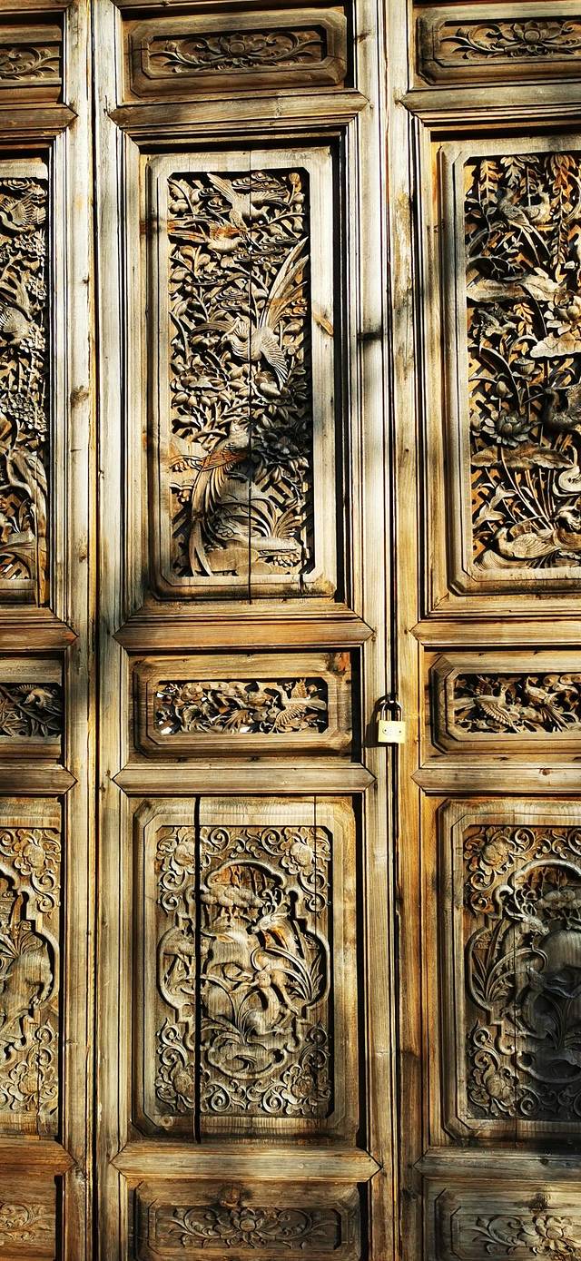 雕花门。