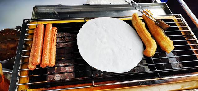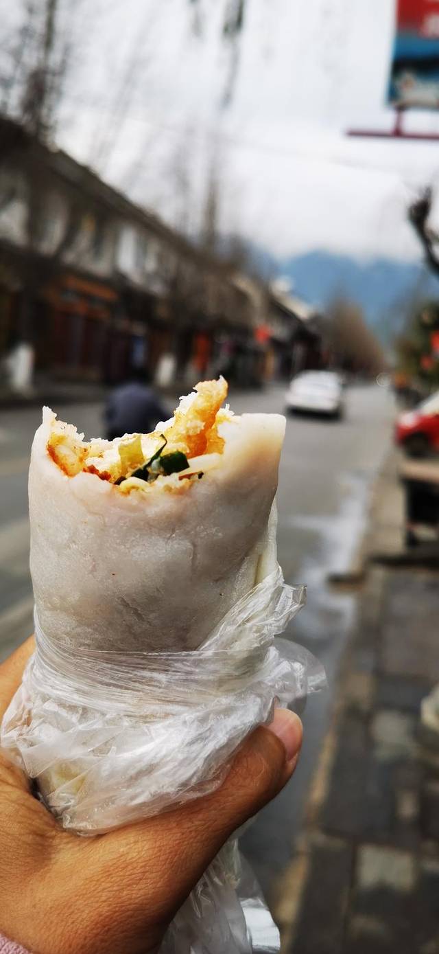 出发前赶紧跑出来吃一个烤饵块。