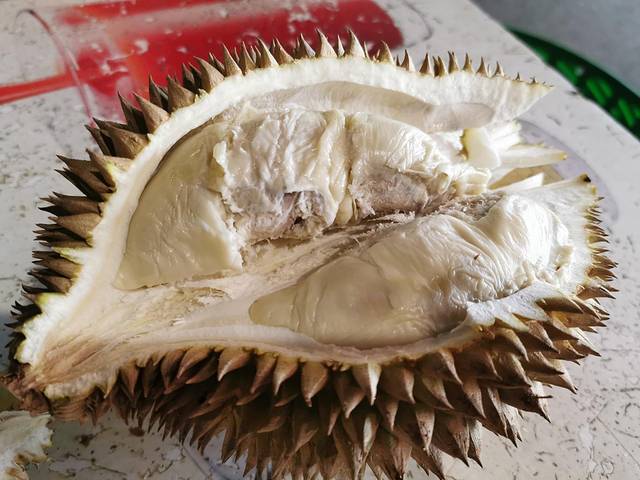吃个本地榴莲,5新币,好吃,好吃。也有猫山王,价格要贵好几倍。甜腻