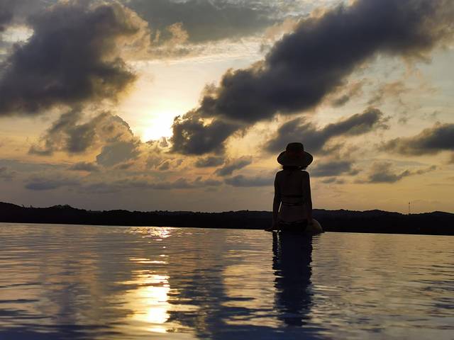 酒店顶楼的无边泳池,也是没几个客人,超爽。