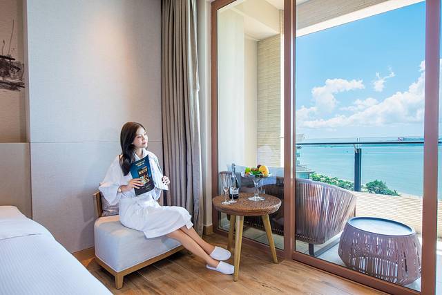 进入房间后,在落地窗旁休憩阅读。温润的海风带来了大海的气息,听着大海稳重又平和的声音,精神瞬间得到放松。