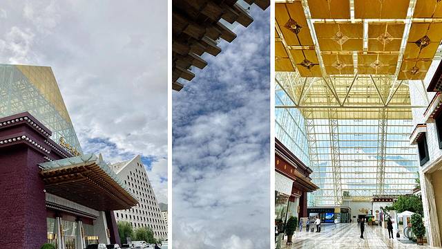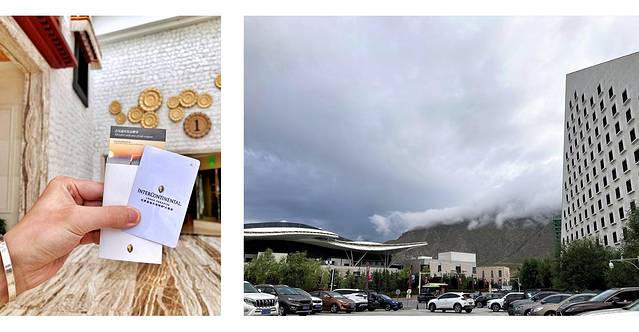 打了车,直奔目的地酒店——拉萨圣地天堂洲际大饭店,一路司机师傅复播着德吉老爷的《牧人之子》,我也一直开着车窗,吹着神圣的藏风,看着窗外变幻莫测的蓝天白云,心似乎安静了一点点