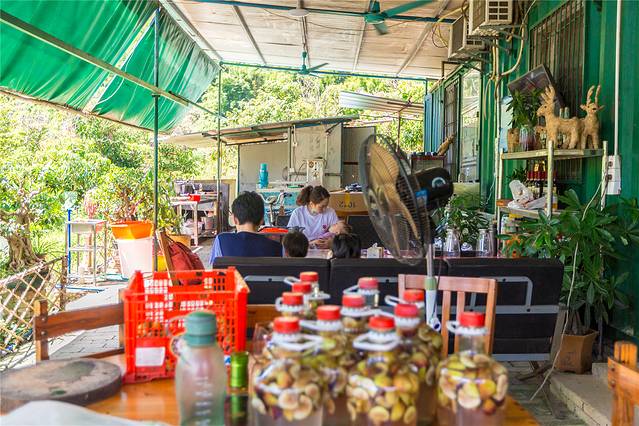 幸好在吾乡石屋的前台可以采购到增城派潭凉粉、派潭白茶等伴手礼,更惊喜的是,办理离店手续后,工作人员还为每个房间的住客送上农场种植的木瓜,相当热情好客。