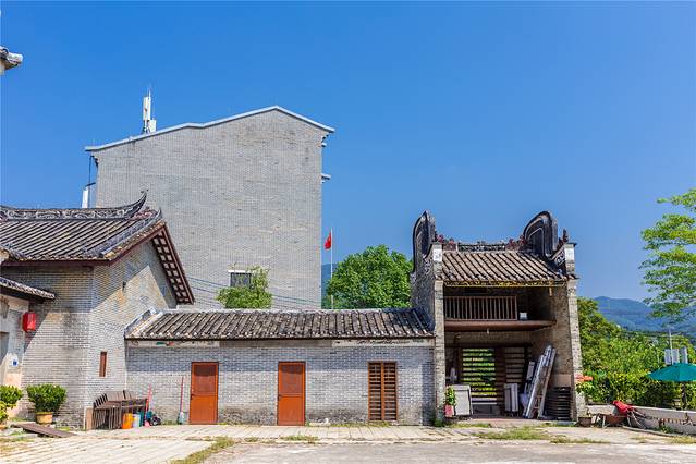 眼前的吾乡石屋精品民宿由客家围屋古村落修复改建而成,祠堂、雕楼、合院、青砖褐瓦、屋檐雕花等等特色保留完整,180多年的历史韵味表现得淋漓尽致。