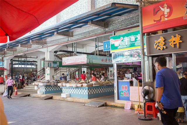 派潭市场宽敞明亮,分为农副产品、水果、大米、海鲜、肉类和蔬菜区域。