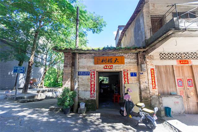 我们跟着导航来到了派潭人民街的大榕树盖仔粉,周边停车还算容易,一下车就能感受到这里的老街风情。