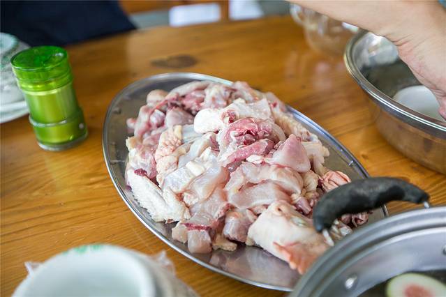 放养的走地鸡运动量十足,从选鸡到浸鸡上桌不过半小时,足够的新鲜。