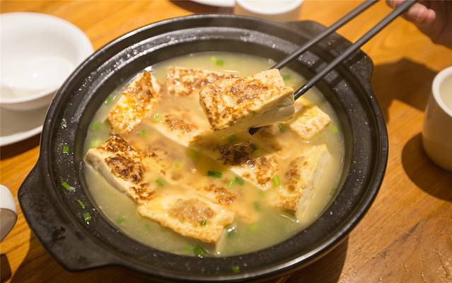 做成客家风味的煎酿豆腐,还没有反应过来,嫩滑的豆腐已经从口腔滑进喉咙,豆香味却一直在口中萦绕。