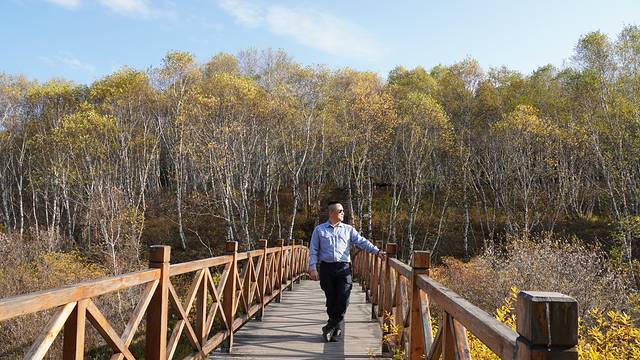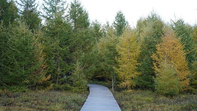 3.白桦映日步道:从云亭下来,一路沿着木栈道往下游走,简直就是一种享受!身边都是大片大片金色的灌木,和黄绿相间的松林,然后会会穿过一大片白桦林,金色和白色相间,树梢上还有或红或蓝的树屋,就像走进了一幅画里,非常安静美好。