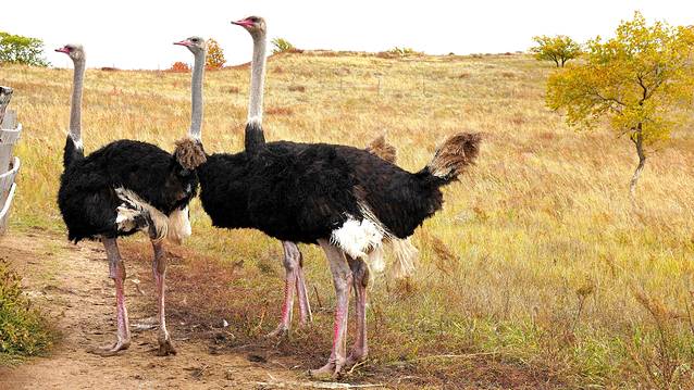 成群的鸵鸟在一起互动嬉戏,如果你能歌善舞,漂亮的雄鸵鸟会陪你翩翩起舞,一起漫步在秋日阳光下。