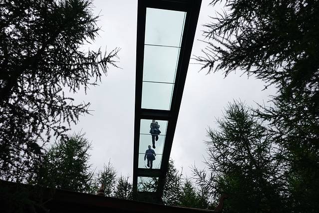 2.树尖上的脚步:听起来就很童话故事,原来,这片玻璃栈道是建在松林的树尖上的,所以,在玻璃栈道上行走的时候,就像是在树尖上行走一样美妙,更美妙的是,天气晴朗的时候,蓝天白云也映在上面,就像在天空中行走一样。当然也可以爬上山巅的云亭赏云海、看落日。