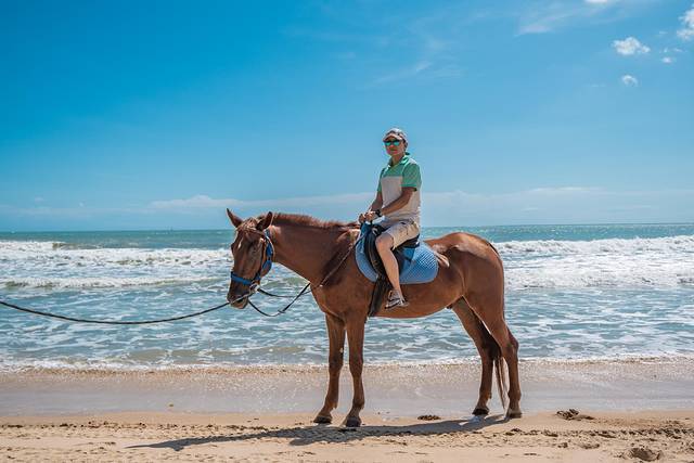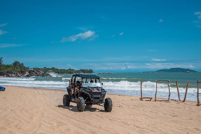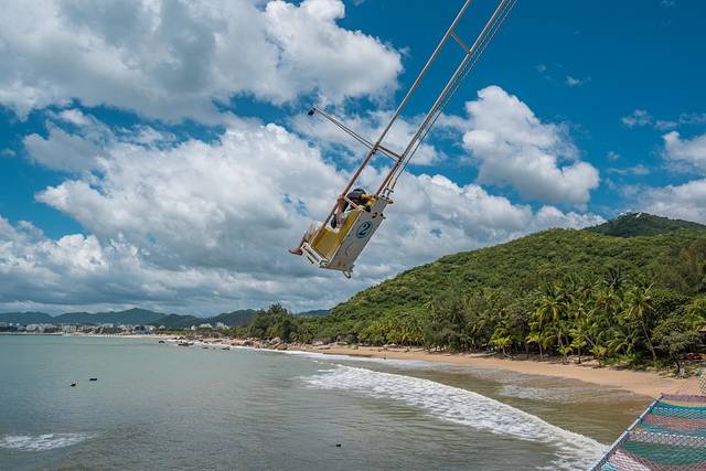 景区内的沙滩越野、海骑、海上秋千、彩虹卡丁车和高空滑索都是非常值得体验的项目。