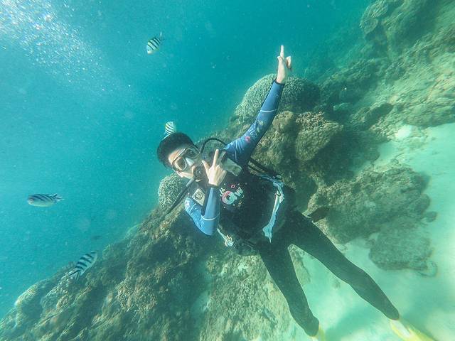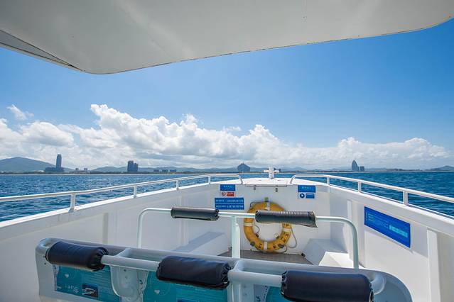 除了秀丽的自然风光,蜈支洲岛岛上的体验项目非常多。在岛上,爱好潜水的你可以选择不同程度的潜水体验,也可以购买潜水拍照的服务。除潜水之外,帆船、海钓、游船,以及各种刺激的海上项目也非常多。坐着观光车游岛一圈之后,就可以安排几个项目好好体验。