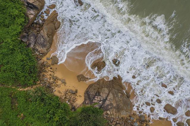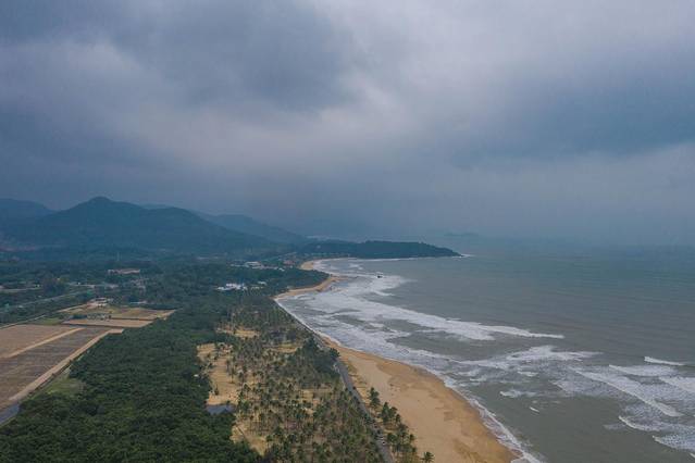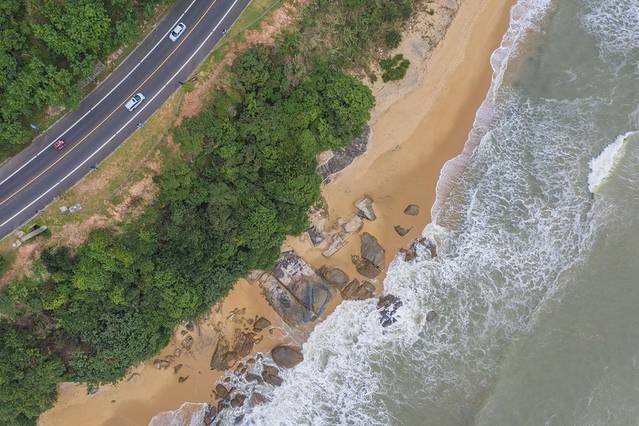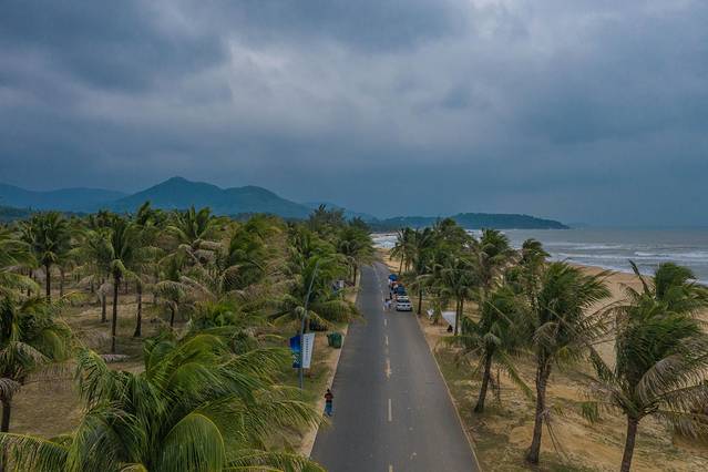 日月湾指的打卡的主要就是滨海的公路了,北边的沿悬崖而建,南侧的穿过椰林,各有各的特色。如果有带无人机在这里拍摄,角度是非常不错的。在日月湾我们大概只停留了两个多小时的时间,随后便继续出发前往位于海棠湾的三亚香格里拉酒店。