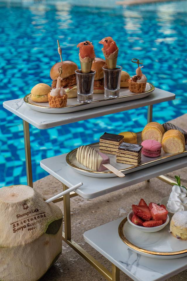 入住酒店后一定要花一下午的时间体验一下泳池吧的下午茶,在三亚闷热的天气里,一颗椰子配泳池才能消去暑气。尤其是情侣出现,这里的下午茶套餐绝对是小姐姐喜欢的。