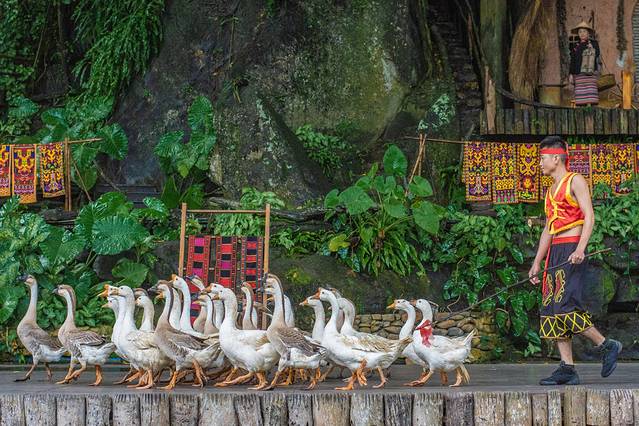 《槟榔谷韵》是景区招牌的大型实景演出,实景到羊和鹅都被拉上舞台当演员了!!!一场非常值得看的演出,各个环节演绎了黎苗人民的起源、婚嫁、劳作等生活中的多个方面。演出很精彩也很浩大。