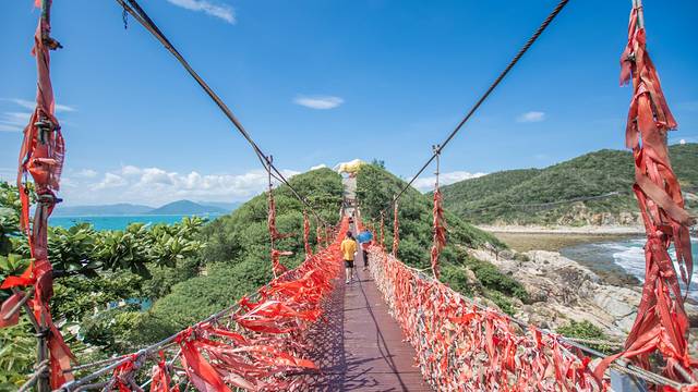 牛王岭是西岛边上的一处小岛,由一处小桥相连,不必单独坐船。岛上可以直观南海,有一处小山可以攀登,山顶还有一条索桥,风景还是很不错的。在岛上也有餐饮业,但是价格和口味真的不想推荐。