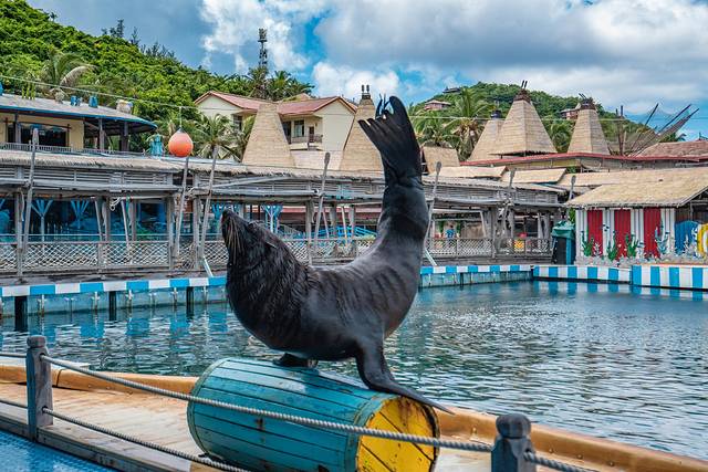 岛上每天11.00、13.30和15.30的三场海洋剧场非常值得值得推荐,海豚、海狮的表演惊喜不断,欢笑连连。25分钟的演出非常值得期待,而且还附赠珊瑚、海底捞瓷两个展览区的游览。