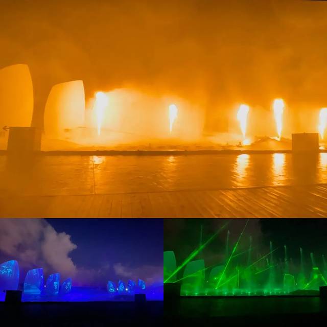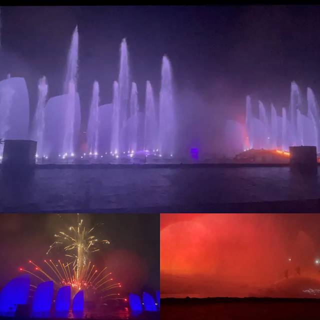 在太阳广场里面,黄昏去完灯塔就正好可以去看秀,前排会有水溅到身上,后排拍视频的话会有人入境,看大家怎么选择吧