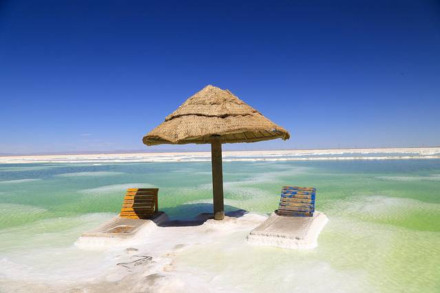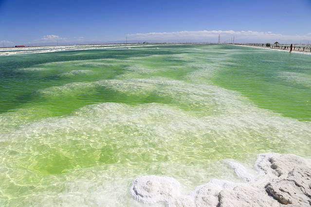 察尔汗盐湖,总面积5856平方公里,是中国最大的盐湖。
