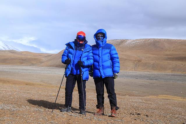 最后给他俩来张合影吧。小川本来喊了很多朋友准备定制一个队伍,结果到了出发前只剩东来一个人可以来玉珠峰,于是他们俩就加入了我们这一期队伍,他俩是我们队伍里唯一结伴报名的队友,其他人都是自己一个人来的。小川和东来还曾一起攀登过四姑娘山。