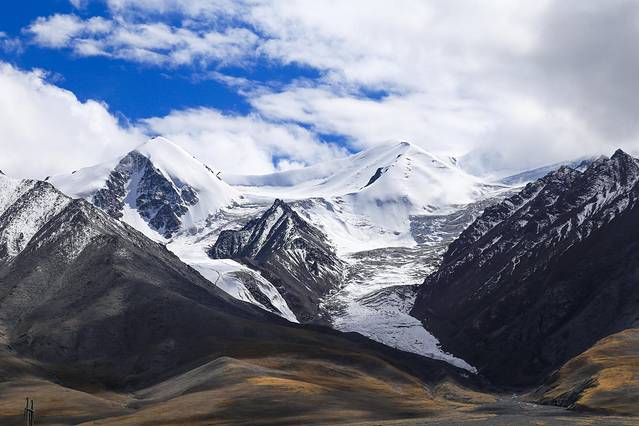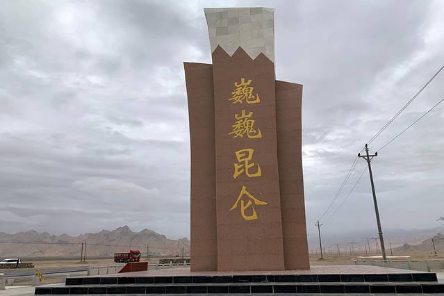 途径昆仑山口,看见了巍巍昆仑标志。
