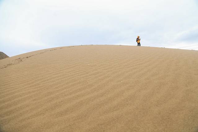 大家都在帐篷里休息,外面没有人,这么空旷的好背景是个拍照的好时机呀,于是我和华仔拍起了照片。