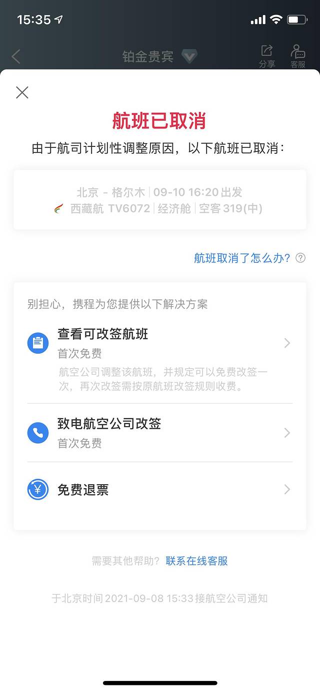 北京至格尔木一周只有两趟直飞航班,几乎只能选择转机出行。为了尽可能减少路上奔波的劳累,我选择了买直飞航班,中途需要经停西宁。悲剧的是,我在出行前接到航司的通知,由于航司计划性调整原因,我的航班被取消了,猜测可能是座位卖不出去。前后一天都没有直飞航班,因此也无法改签其他航班,只能退票后自己重新买转机航班。