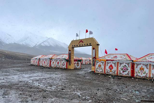 下午三点多钟,我们迎着小雪抵达了海拔5050M的大本营。
