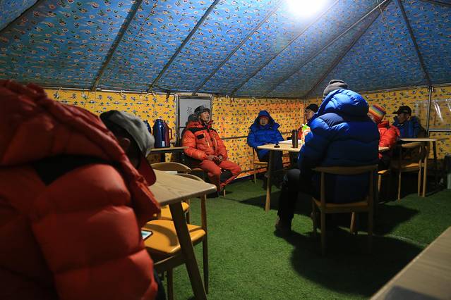 这是大家最后一次排排坐,今夜的气氛与前几日相比稍显紧张,扣肉介绍了未来两天的攀登行程,以及我们会遇到的各种问题,期间老眭一连提了五六个问题。