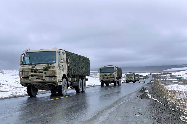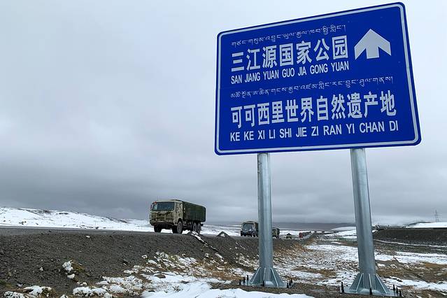 途径昆仑山口,看见了一些军车经过。