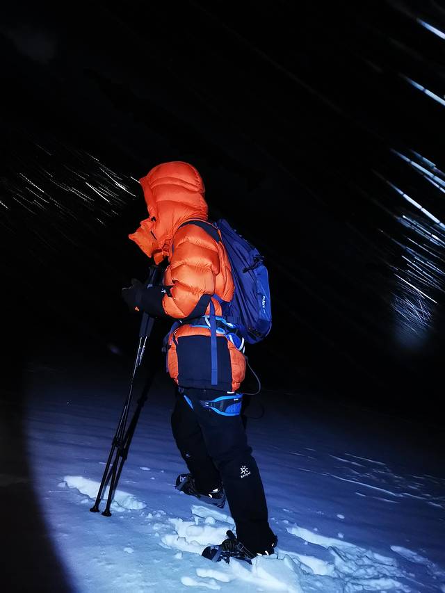 凌晨三点十五分,我沿着队友留下的足迹往出发前进,在风雪的拍打中,大脑慢慢清醒了。