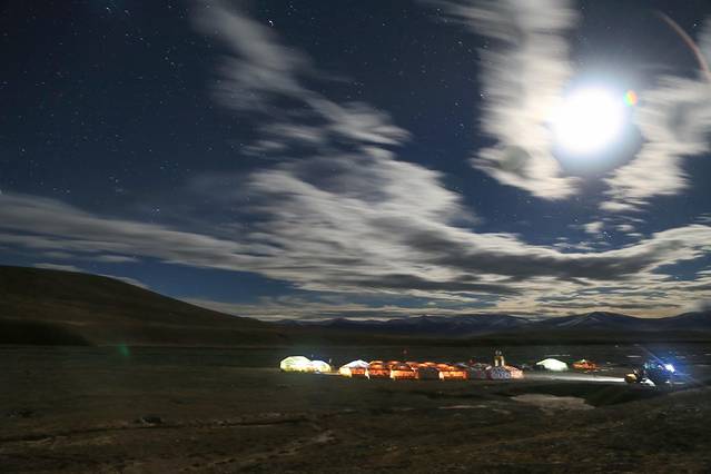 晚上九点多钟,我、小川、华仔三人相约去拍星星,因为过于开心,我穿着拖鞋跑上跑下也没觉得累。在月光干扰+没有三脚架+云太多的阻碍下,最终我们没能拍到满意的照片,但是欣赏一下大本营的夜晚也不错。