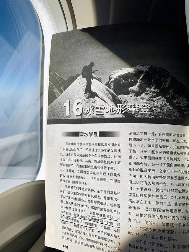 吃完早餐,离降落还有很长一段时间,我在飞机上看了会儿《攀登手册》。