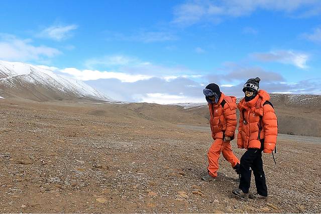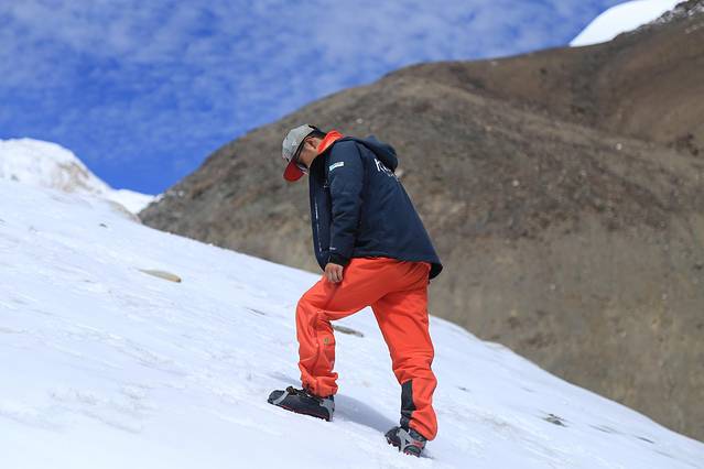 拍完照片,就该好好拉练了。华仔给我一对一培训了高海拔行走的方式、正确的呼吸节奏,并带着我反复练习,次旺在一旁给我们录了视频。