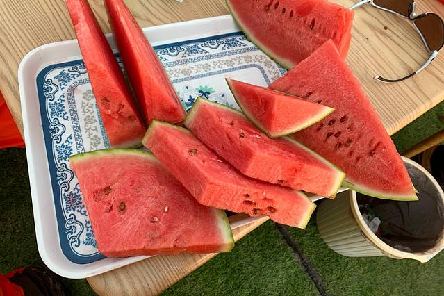 下午三点多钟,我终于回到了大本营,如释重负。餐厅帐里还有一大盘西瓜留给了我,真是太幸福了。