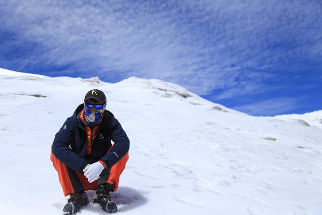 这位是老眭,此刻的状态还不错,应该感谢我帮他留下了攀登全程最帅的照片,几个小时后他就开始高反了,一直持续到攀登结束。