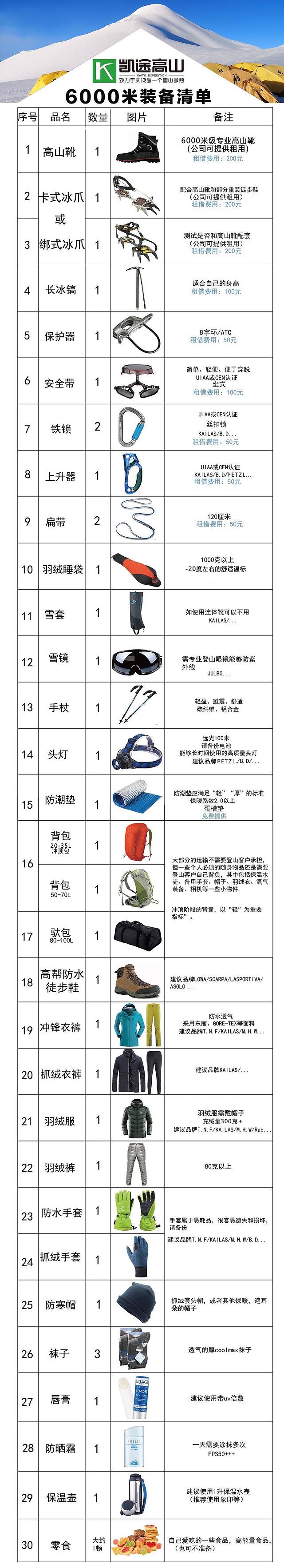 6000米装备清单