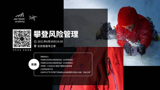 2、线上分享会:推荐观看始祖鸟“山地课堂”系列视频,每期都会邀请一个大拿来做分享,涵盖徒步、登山、攀冰、攀岩、越野跑、装备选择等内容,最近几个月是每周三的19:30固定有直播分享。个人比较喜欢的一期是周鹏的《攀登风险管理》,不太确定是否可以看回放。另外,凯途高山公众号里的“高山云讲堂”也有大量线上视频可以学习。