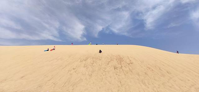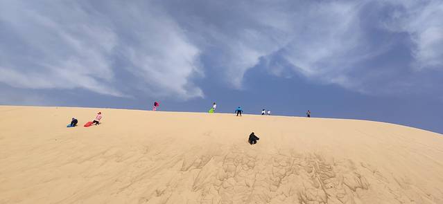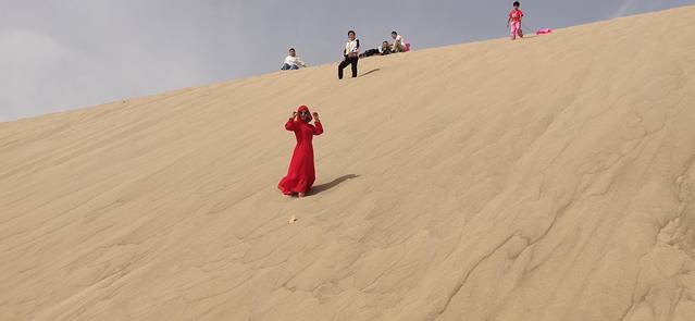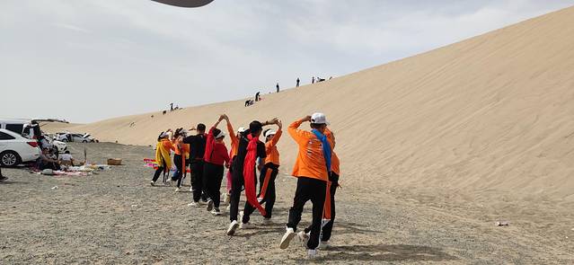 爬沙很累,滑沙太短暂,下山吃饭,偶遇抖音小分队,给你们养养眼。