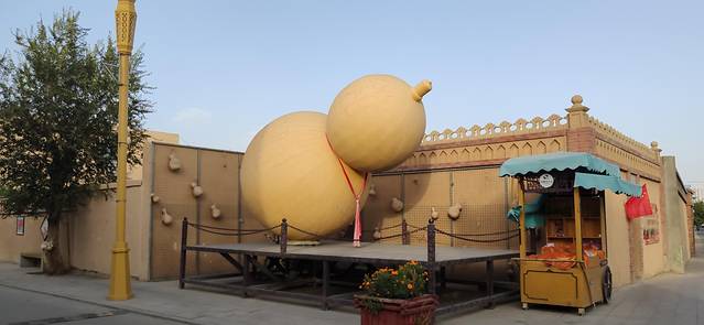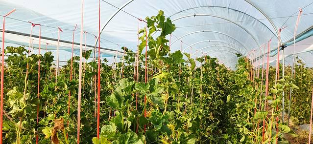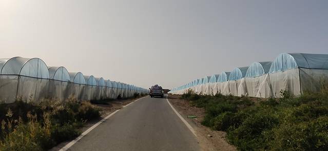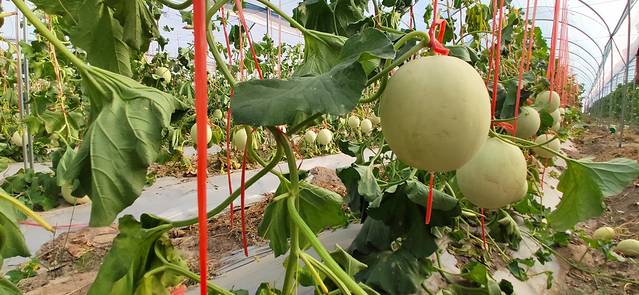 水库旁边有瓜果大棚两座。里面中满了哈密瓜,我们来的时候还没有成熟。