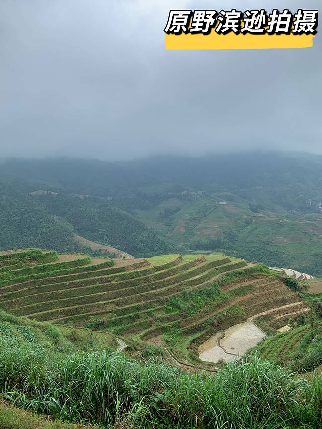龙脊我们总共用时两天。沿途坐着大巴在去往龙脊的路上,车子行驶在陡峭的山路。山路一路蜿蜒盘旋,如七星,如蛇。路非常的窄,在下山的时候两辆客车狭路相逢,反光镜都撞在一起了。车辆行驶到快到景区门口的时候,我们看到前面正在抢修道路,听说前几天发生了垮塌。因为暴雨的缘故。所以去龙脊的朋友们提前关注一下天气预报是没有错的。而且这里比较冷,下雨比较多,建议准备雨披,外套。到了景区我们选择一路步行参观,(有缆车)。龙脊梯田真的是很有特色,把精耕细作的农耕文化体现的淋漓尽致。山路上刚下过雨,空气非常的清新。小草从石头缝里长出来,犹如绿翡翠一样镶嵌在这石头路上,非常的古香古色。大约摸二个小时爬上山顶,向下俯瞰,整个梯田错落有致,云雾缭绕,犹如仙境。山路上还有母鸡带着小鸡在捕食蚯蚓。非常的有生活气息。不多说了直接上图。